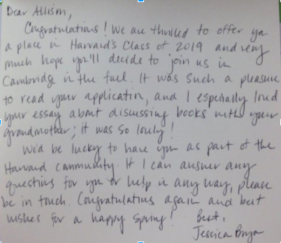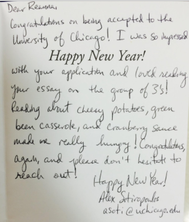 Acceptances: Cornell University, Harvard College, University of Cincinnati, The Ohio State University, Washington University in St. Louis, University of Illinois, Urbana-Champaign, University of Virginia, Case Western Reserve University, Vanderbilt University